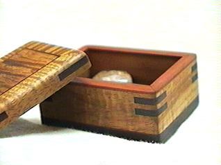 This is such a pretty little box. I think the sunlight was a little brighter, and resulted in a really bright white background that makes the box stand out; it also really shows off the banding in the wood.